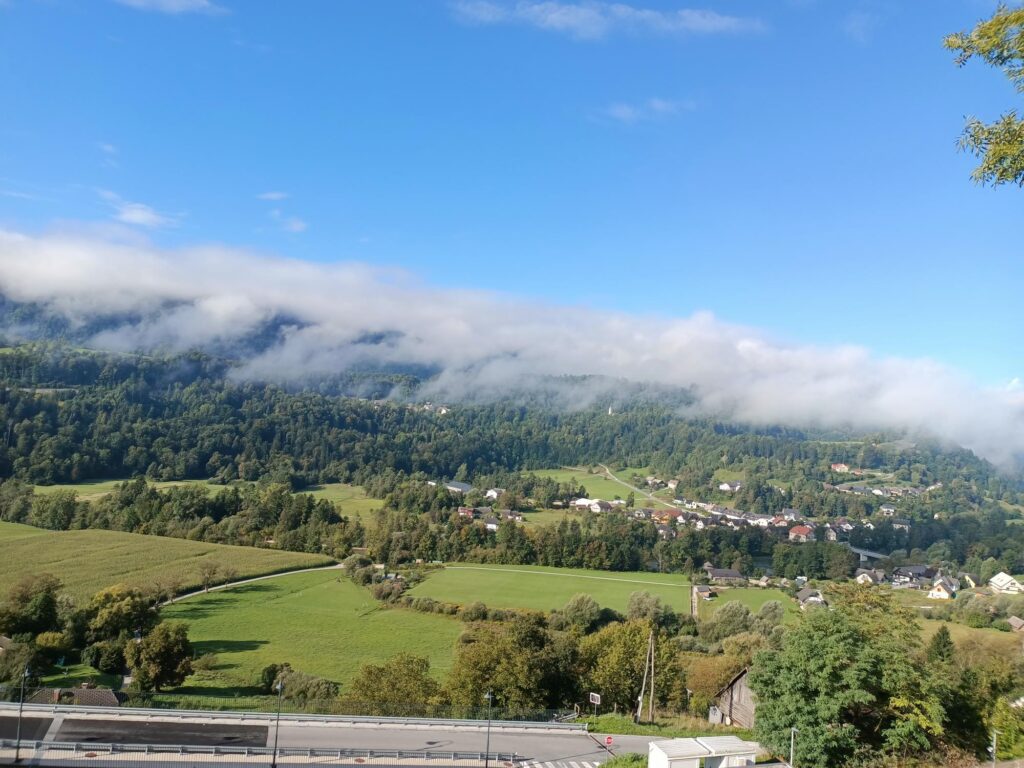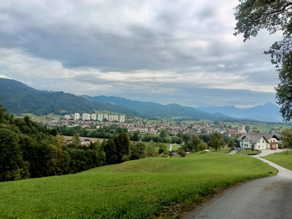 Po zobaczeniu zabytkowego centrum i zamku poszedłem polną drogą z zakrętami i po kilku minutach dotarłem na wzgórze Krancelj (453 m n.p.m.). Malownicze miejsce, gdzie czas się zatrzymał, a ja leżałem na łące, podziwiając widok na okolicę, między innymi Starą Lokę.