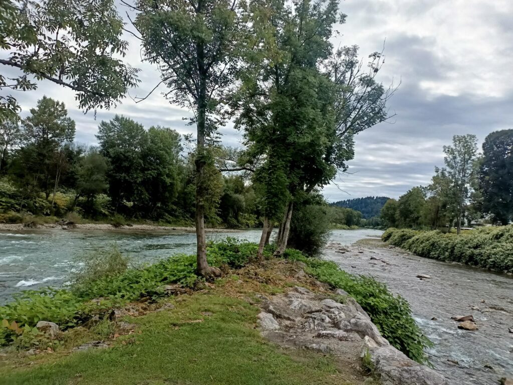 W centrum można też zobaczyć miejsce, gdzie łączą się dwie rzeki: Sora (nie, nie chodzi o program grafiki AI) oddaje swoje wzburzone wody głównej rzece kraju, Sawie. Idąc wzdłuż tej drugiej, można dojść do ładnego, wydłużonego jeziora zaporowego Zbiljsko. Z kolei po drugiej stronie Sory znajduje się kościół św. Jana od Krzyża.