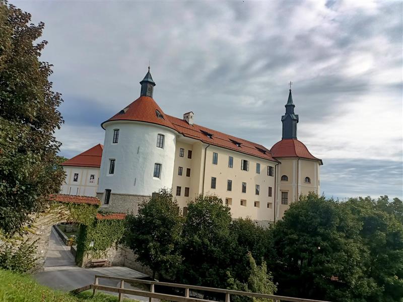 Ale zabytków nie było nie dlatego, że wcale ich nie ma, ale dlatego, że klucz do historii Stražišča jest zupełnie w innym miejscu. Poszedłem więc tam przez labirynt uliczek, po drodze mijając siedemnastowieczny kościół św. Jerneja, i dotarłem do zamku. Architektura surowa, teren zamknięty, ale znaczenie historyczne spore. Zbudowany w XVI wieku, pozwolił miejscowości rozwinąć się. Obok jest jeszcze jeden ciekawy obiekt, czyli stara romańska kaplica z X-XI stulecia.